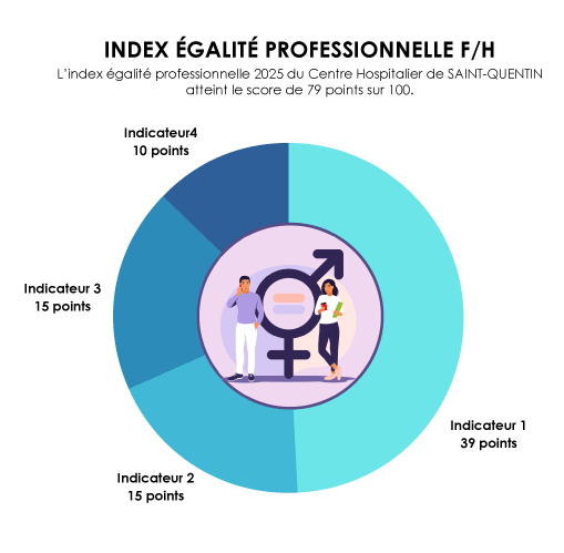 Les indicateurs 1 (sur 40 points) et 2 (sur 30 points) reflètent les écarts globaux de rémunération entre les femmes et les hommes du personnel médical et du personnel non médical.